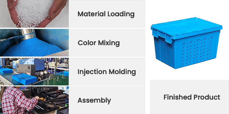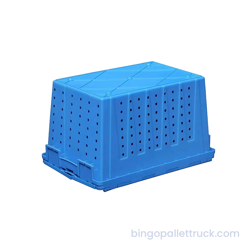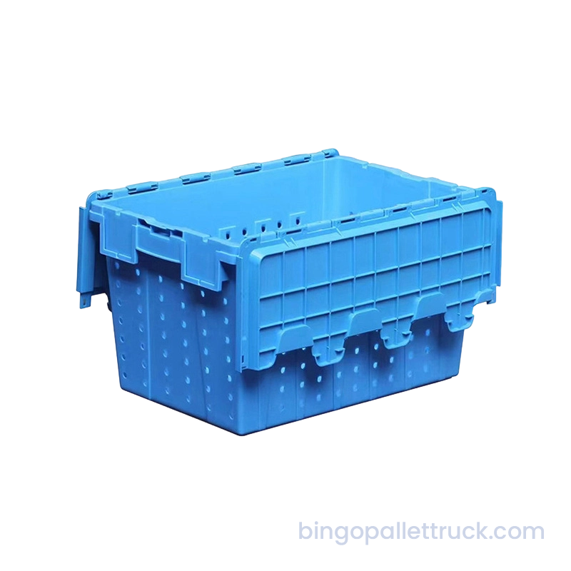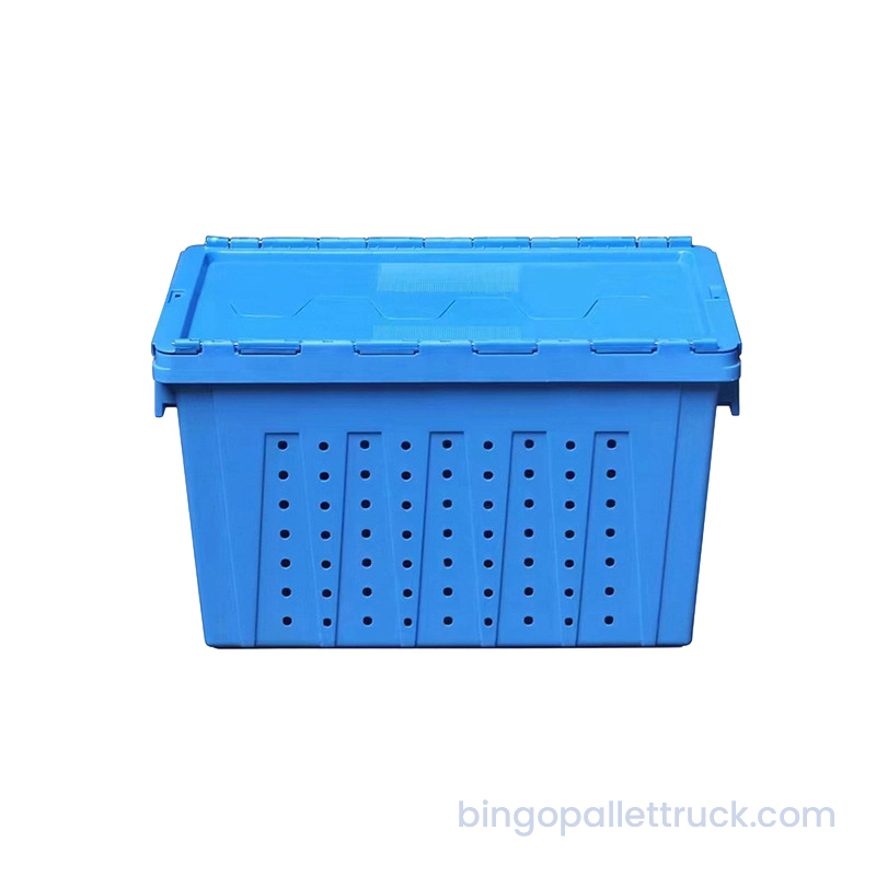 This 600×400×355mm attached lid stackable and nestable plastic crate is designed for heavy-duty industrial logistics applications. Manufactured from high-impact food-safe PP resin, it provides a large nominal volume with internal dimensions 545×370×335mm and a reinforced rib structure for enhanced load-bearing capacity. The integrated attached lid ensures secure closure and dust protection, while the full round hole perforations deliver consistent ventilation for perishable items. With a net weight of 3.16kg, the crate's stackable design optimizes vertical space utilization, making it durable, reusable, and optimized for cold chain distribution, supermarket operations and industrial logistics.