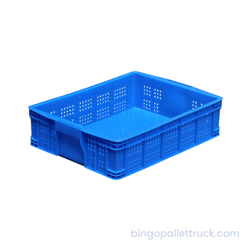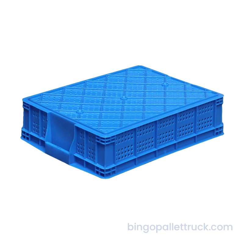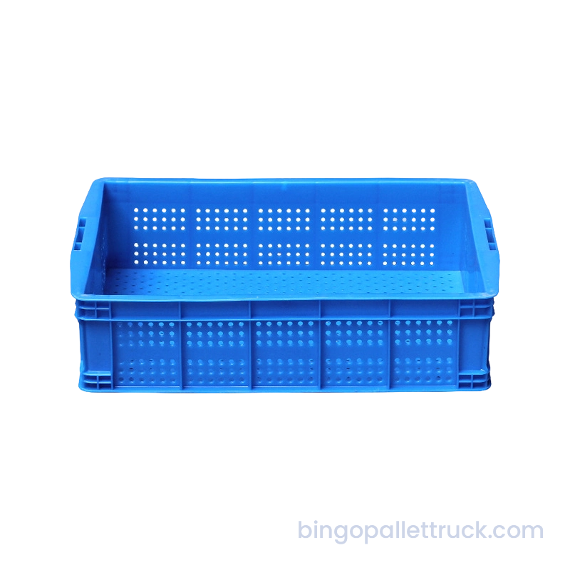 This 520×380×130mm round hole stackable plastic crate is engineered for light-duty industrial logistics and cold chain storage applications. Manufactured from high-impact food-safe HDPE resin, it provides an ultra-shallow nominal working volume with internal dimensions of 465×350×120mm and a multi-layer thickened rib structure for enhanced load-bearing capacity and structural stability. The uniform round eye mesh design ensures superior ventilation, drainage and product visibility, making it ideal for small fresh produce transportation and storage. The integrated handle design enables easy manual handling and compatibility with standard forklift and conveyor systems. The stackable profile ensures efficient vertical space utilization, reducing logistics costs and optimizing warehouse density. With a net weight of 1.1kg, the crate is durable, reusable, and compliant with food safety standards, making it suitable for small fruit and vegetable transport, cold chain distribution, warehouse management and supermarket operations.