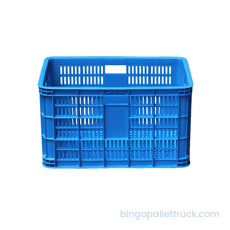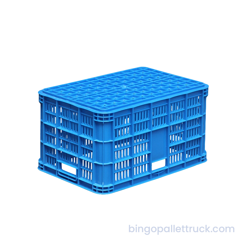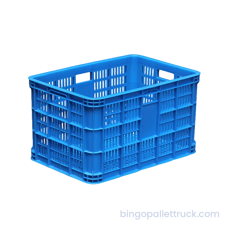 This 537×370×310mm stackable plastic crate is engineered for heavy-duty industrial logistics and fruit cultivation applications. Manufactured from high-impact food-safe HDPE resin, it provides a large nominal volume with internal dimensions of 503×335×300mm and a multi-layer reinforced rib structure for enhanced load-bearing capacity and durability. The fully perforated mesh design ensures superior ventilation and product visibility, making it suitable for fresh produce transportation and storage. The integrated handle design enables easy manual and forklift handling, while the stackable design ensures efficient vertical space utilization. With a net weight of 2.05kg, the crate is durable, reusable, and optimized for warehouse management, fruit harvesting and industrial distribution.