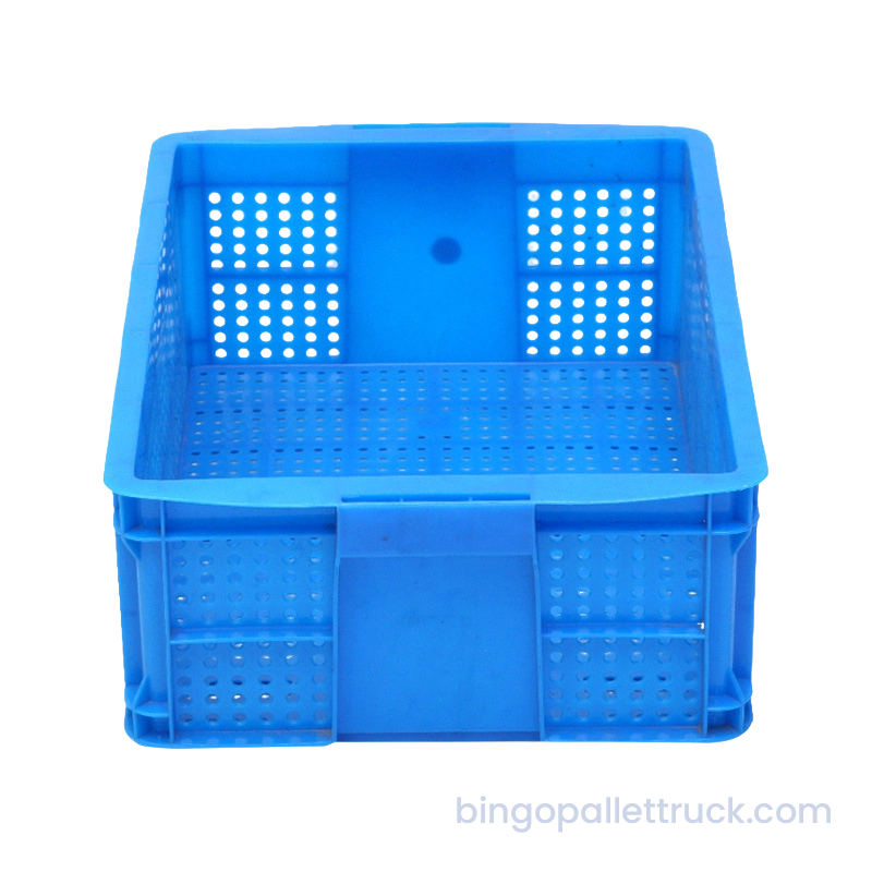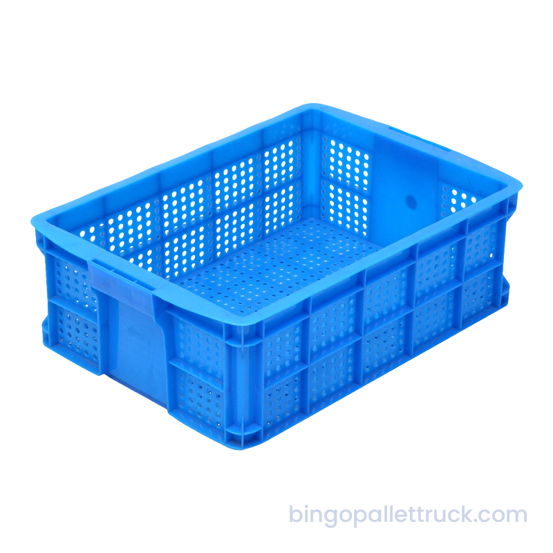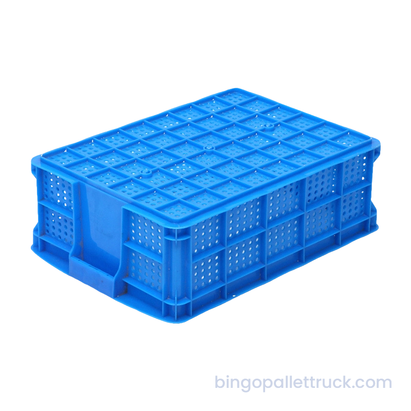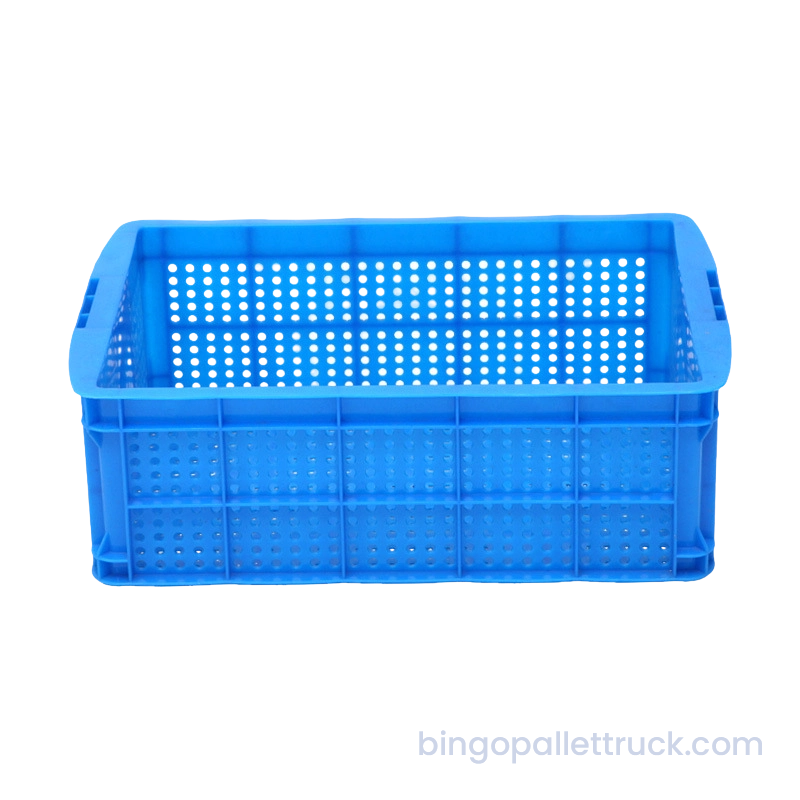 This 510×355×170mm round hole stackable plastic crate is engineered for light-duty industrial logistics and cold chain storage applications. Manufactured from high-impact food-safe HDPE resin, it provides a shallow nominal working volume with internal dimensions of 450×315×160mm and a multi-layer thickened rib structure for enhanced load-bearing capacity and structural stability. The uniform round eye mesh design ensures superior ventilation, drainage and product visibility, making it ideal for small fresh produce transportation and storage. The integrated handle design enables easy manual handling and compatibility with standard forklift and conveyor systems. The stackable profile ensures efficient vertical space utilization, reducing logistics costs and optimizing warehouse density. With a net weight of 1.1kg, the crate is durable, reusable, and compliant with food safety standards, making it suitable for small fruit and vegetable transport, cold chain distribution, warehouse management and supermarket operations.